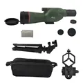 Main Features and Advantages? Variable 15x to 45x zoom magnification and dynamic lens focusing system -- makes it easy to zoom in on target in detail.? Fully multi-coated green film eyepiece lens helps to acquire a clearer, brighter and higher-contrast view.? 60mm large objective lens to ensure the light-gathering power and high resolution, as well as large field of view range.? Come with tripod allows rotation of the eyepiece to a sideways position, providing adjustable viewing angles.? Durable framework and high-quality rubber armor provide non-slip grip, shock-proof grip and durable external protection.? Waterproof, fogproof, shock-proof performances allow the scope to be used in all weather conditions.? The retractable sun shade can be stretched out to protect the eyepiece and helps reduce glare..? The digiscoping cell phone adapter enables you to take videos and images in the distant world.